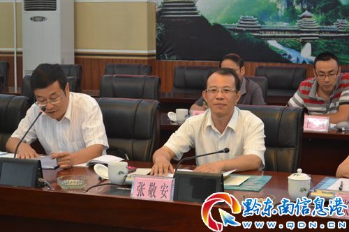 州委副書記楊華昌向中央新聞媒體采訪團匯報中共黔東南州委進一步加強對政協工作領導的情況。