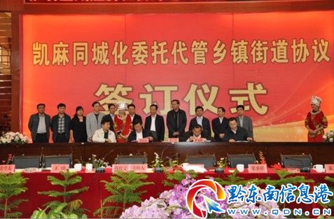 10月30日上午,由黔東南州委、州人民政府組織召開的凱麻同城化委托代管鄉(xiāng)鎮(zhèn)街道協(xié)議簽訂儀式在凱里經(jīng)濟(jì)開發(fā)區(qū)隆重舉行。州委書記李飛躍,州政協(xié)主席梁承祥,州委常委、州人民政府常務(wù)副州長(zhǎng)馮仕文,州委常委、凱里市委書記、凱里經(jīng)濟(jì)開發(fā)區(qū)工委書記黃遠(yuǎn)良,州委常委、州委組織部部長(zhǎng)王貴,州人大副主任龍世勇,州人民政府副州長(zhǎng)姜學(xué)東,州人民政府副州長(zhǎng)、凱里市市長(zhǎng)、凱里經(jīng)濟(jì)開發(fā)區(qū)管委會(huì)主任洪金洲等出席,州直有關(guān)部門、凱里市、麻江縣、凱里經(jīng)濟(jì)開發(fā)區(qū)、爐碧經(jīng)濟(jì)開發(fā)區(qū)有關(guān)領(lǐng)導(dǎo)參加會(huì)議。
