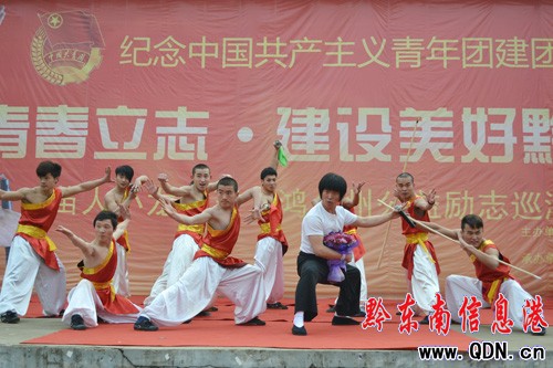 為貫徹團中央《關于在全團開展分類引導青年工作的實施意見》文件精神,紀念建團90周年,應共青團黔東南州委、黔東南州教育局邀請,黔東南籍功夫影視明星王飛鴻將在全州舉行校園巡回勵志演出活動,通過講解自己奮斗歷程,引導全州青少年樹立正確的價值觀和人生觀。