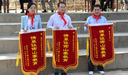 為感謝愛心企業的義舉,白臘小學的學生們特意為他們奉上了一曲童聲合唱《感恩的心》, 在愛心助學活動即將結束時,白臘小學校長楊昌武將一面面飽含全體師生感謝之情的錦旗,回贈給了愛心企業。(凌忠云)