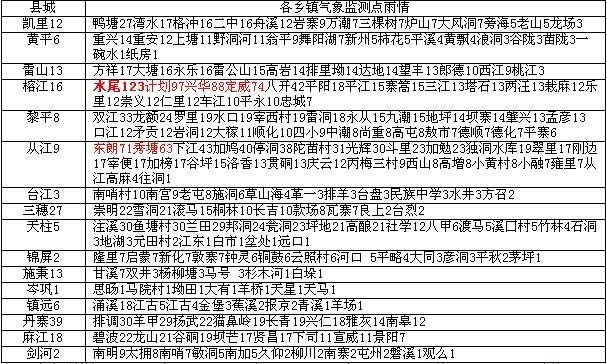 據(jù)州氣象局消息 根據(jù)全州244個氣象站監(jiān)測顯示,4月28日14時~29日8時共有243個站點(diǎn)出現(xiàn)降水,其中水尾122.8mm1個站點(diǎn)降大暴雨,計(jì)劃96.7mm、興華88.2mm、定威73.6mm、東朗71.4mm、秀塘63.2mm5個站暴雨,15個站大雨,其余小到中雨,大雨和暴雨出現(xiàn)在榕江、從江、丹寨,注意預(yù)防都柳江流域暴雨山洪災(zāi)害。州內(nèi)10縣市進(jìn)行防雹作業(yè)16次,無冰雹災(zāi)害。具體雨情見下表及圖1: