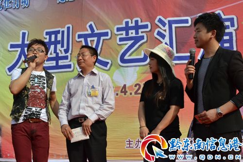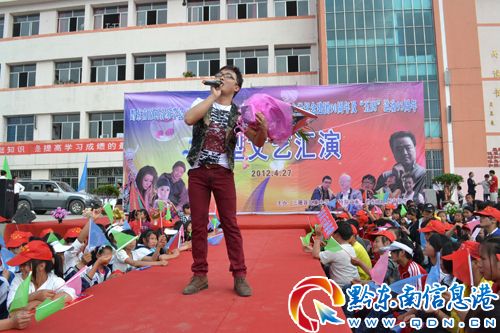 瓦寨中學校長袁仁坤致歡迎辭:今天春風和煦,氣候宜人,稍微有點炎熱的天氣正好表達今天的心情,我們在這里舉行黔東南原創音樂學會“愛在行動”——走進瓦寨中學暨共青團建團90周年及紀念“五四”運動93周年大型文藝演出活動。此次活動得到了凱里學院教師、黔東南原創音樂學會副會長鄭建安老師的精心組織,眾多歌手的積極參與,各位領導、嘉賓的關心和支持。在此,我謹代表瓦寨中學全體教職工、所有學生以及瓦寨鎮的父老鄉親表示衷心的感謝和崇高的敬意。此次活動經過認真的策劃,精心的準備,活動一定成功,意義必定深遠。我們相信,歌手們的精彩演唱,一定是一次豐富的文化大餐。將為推動我校的校園文化生活,提升教育教學質量提供不竭的源泉和動力。