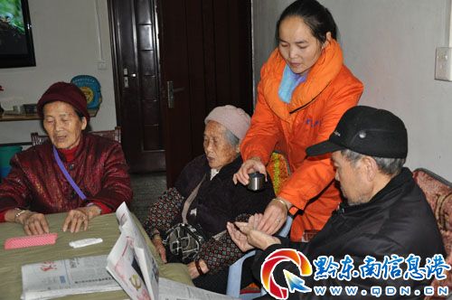 楊春平告訴記者,一次,她在電視上看到某省創(chuàng)辦民營(yíng)養(yǎng)老院,讓很多老人安享晚年,受到啟發(fā)的她萌生了在天柱創(chuàng)辦養(yǎng)老院的想法。她將自己的打算跟姐姐、妹妹及妹夫講了,得到大家的贊同,于是創(chuàng)辦了金色夕陽紅康樂中心,春平負(fù)責(zé)人兼管理員,姐姐是護(hù)理人員,在醫(yī)院上班的妹妹也辭職來任老人們的專職醫(yī)生,妹夫?qū)B汃{駛員負(fù)責(zé)接送老人,另外還聘請(qǐng)兩個(gè)專職護(hù)理人員。