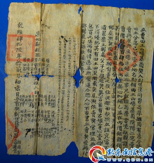數量大。據初步了解,散存民間的各類契約、稅訖等古籍文書在全縣11個鄉鎮都有發現,而且數量較多,保守估計有五萬多件。僅在大有鄉木召村地步坎自然寨,就發現清朝康熙三十七年到民國三十五的各種文書300余件。