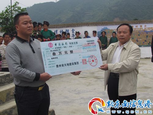 5月31日,臨近一年一度的“六·一”國際兒童節,貴州大地建設集團不辭勞苦來到雷山大塘鄉獨南小學開展獻愛心捐贈活動,雷山縣副縣長張妤及鄉有關領導出席捐贈儀式。