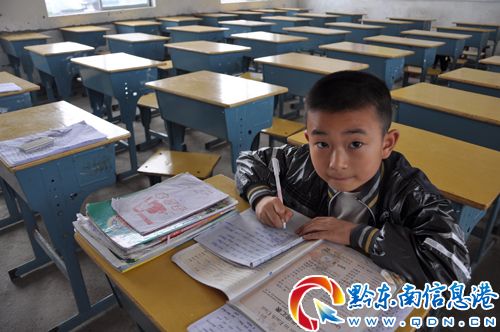 課間操或體育課,羅森一個人在教室寫作業。