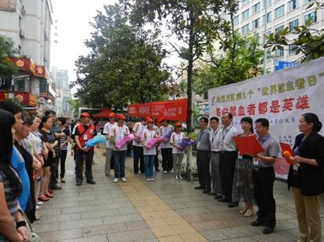 據黔東南州人民政府網消息 2012年6月14日是第9個“世界獻血者日”,我州在凱里舉行了隆重的慶祝活動。州、市衛生部門和紅十字會領導出席慶祝活動儀式,州人民政府副秘書長雷鎮瓊主持,貴州省電子信息職業技術學院、凱里學院、黔東南州職業技術學院的志愿者代表和獲得無償獻血奉獻獎的代表參加活動。