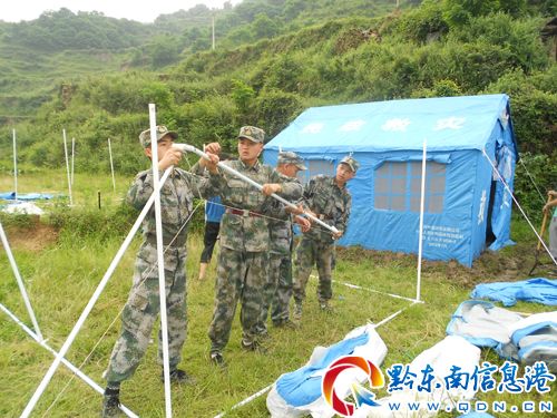 武警消防官兵安裝臨時帳篷