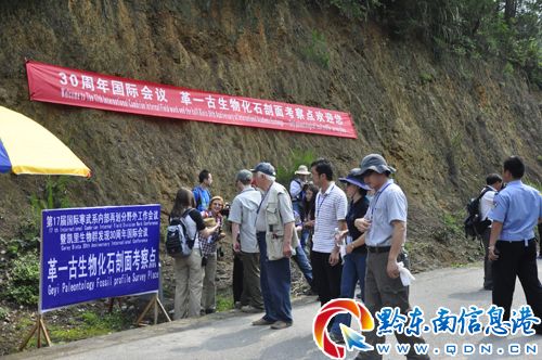 專家組一行深入到各個剖面,實地考察古生物化石群“金釘子”剖面位置的準確性。并召開學術研討會,討論會就全球寒武系2-3統“金釘子” 古生物化石群進行討論交流。通過實地考察和研討,專家們認為,黔東南州古生物化石群“金釘子”是世界珍稀的地質遺跡,是人類的寶貴財富,八郎寒武系2-3統界線剖面已初步定性成為國際層型剖面;并建議把凱里生物群予以更好的保護,為世界古生物研究提供更好的平臺。