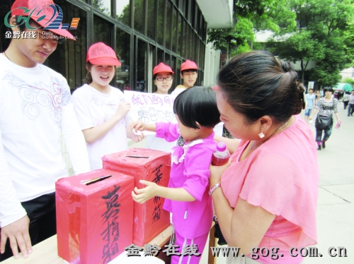 經(jīng)過系里批準(zhǔn),影像系的300多個同學(xué)扭成了一股堅實的力量,在貴醫(yī)附院和貴陽醫(yī)學(xué)院兩個地方安設(shè)5個募捐點,從6月13日起,每天只要是沒課,同學(xué)們輪流來到愛心募捐點為他湊款。