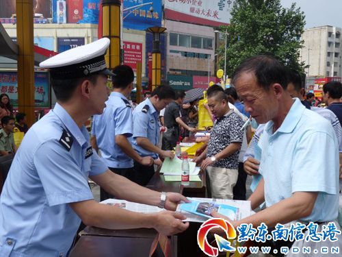 今年6月是全國第11個“安全生產月”,6月29日,黔東南州、凱里市安監、公安、消防、交警等部門聯合在凱里市東方大廈前開展“安全生產月”宣傳活動。當天,黔東南州交警支隊、凱里市交警大隊組織宣傳民警參與開展“安全生產月”交通安全宣傳活動,通過擺放展板、發放溫馨提示小卡片、接受咨詢等方式開展宣傳活動,為群眾答疑解惑,廣泛宣傳交通安全出行常識,提高廣大交通參與者的交通安全意識,為廣大市民群眾夏季出行積極編織交通安全網。 (唐光新 攝)