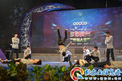 6月29日晚,2012多彩貴州黔東南賽區選拔賽街舞參賽人員、隊伍進行決賽。州直工委選送單位的參賽節目《強勢回歸》經過激烈角逐,從眾多選送單位的節目中脫穎而出獲決賽第一名。(文筱晟)