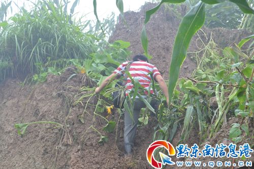 楊家坡山腰山體滑坡之處莊稼農(nóng)作物一片損毀