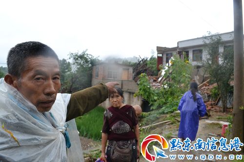 受災(zāi)村民羅義兵接受記者采訪現(xiàn)場