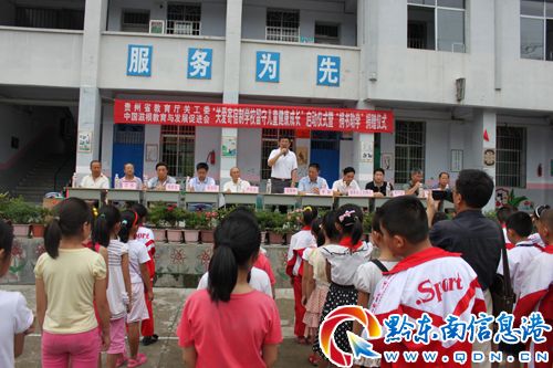 近日,貴州省教育廳關工委副主任皮俊林、中國滋根教育與發展促進會貴州項目主任倪永旺等一行7人到雷山縣開展“關愛寄宿制學校留守兒童健康成長”啟動儀式暨“捐書助學”活動,捐贈活動儀式在丹江小學舉行,并由該縣教育和科技局紀檢組長潘承光主持。