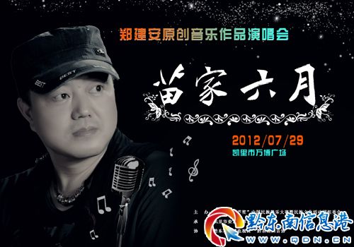 鄭建安:目前,全國觀眾比較熟悉的和我自己比較滿意的歌曲有全國優(yōu)秀流行歌曲創(chuàng)作大賽獲獎作品《苗家六月》、電影《苗鄉(xiāng)情》插曲《說不出的痛》、電影《女兵還鄉(xiāng)》主題曲《想念你成了災(zāi)》、央視6.1慈善晚會主題歌《心靈渴望》等等,這些歌曲在央視等媒體平臺展示后,我覺得這是對我20余年音樂創(chuàng)作的一種肯定和鼓勵,同時我覺得肩上的擔(dān)子更重了,下一步計劃多寫一些關(guān)于我們貴州題材的作品,更好的宣傳黔東南、宣傳貴州。在這里,我首先要感謝的是凱里學(xué)院院長曾羽先生和我的搭檔黃昌松先生、楊長文先生,是他們的歌詞一直感動著我,才給予了我更多的創(chuàng)作源泉和創(chuàng)作激情;其次要感謝的是我的同學(xué)曾憲達(dá),是他為我早期歌曲嘔心瀝血的編曲和精益求精的錄混,才有了現(xiàn)在大家聽到的《苗家六月》、《今夜我不想離開》等歌曲;第三,我要感謝的是阿幼朵、雷艷、張歡、陳珠珠、李東蔭、楊恒、青竹、楊家昭等優(yōu)秀歌手,他們出色的演繹了我很多的歌曲,才使得我的作品被大家喜愛!