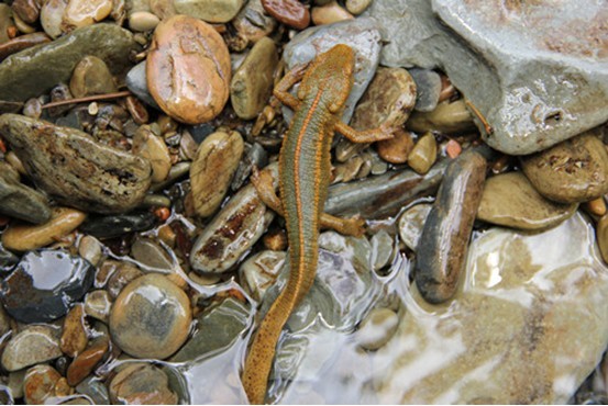 近日,雷公山保護區濕地調查工作組在交臘片區開展濕地資源調查過程中發現國家二級保護動物——細痣疣螈。