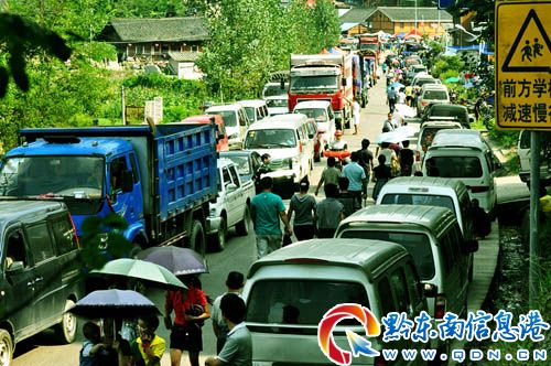 在采訪中,因?yàn)椴稍L車也被堵,記者只好棄車往黃平方向步行,結(jié)果發(fā)現(xiàn),從虎莊往黃平縣方向的堵車道路至少有3公里,道路上的車輛排成了一條長(zhǎng)龍。下午5時(shí)30分,斗牛場(chǎng)的比賽接近尾聲,加之交警部門大力疏導(dǎo),從虎莊至黃平方向的“堵勢(shì)”有所緩解,記者趁勢(shì)殺出“重圍”。但黃平往凱里方向的堵車狀況依然很嚴(yán)重。至事發(fā)當(dāng)晚8時(shí)許,記者原路返回,凱施公路堵車的狀況大為緩解,但因車流量極大,并未完全暢通,過往車輛排成長(zhǎng)隊(duì),緩緩而行,必要時(shí)還要“小停”幾分鐘等待。