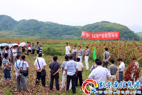 日前,黔東南州高粱測產驗收現場會在黎平召開,對黎平縣示范種植的紅櫻子高粱進行了現場測產。經測產,黎平紅櫻子高粱畝產量達384.4公斤,訂單保底價為3.4元每公斤,按今年市場價4.0元每公斤計算,畝產值達到1537.6元。據悉,黎平縣今年示范種植紅櫻子高粱7500畝,分布該縣22個鄉鎮,從測產結果看,均有好收成。