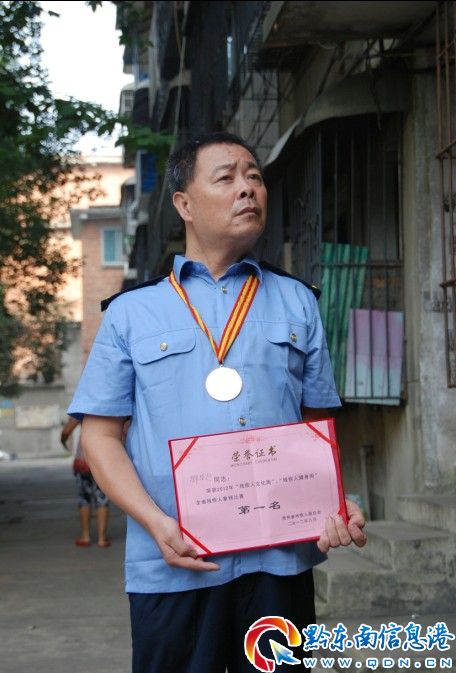 今年51歲的鄧華超是一名普通的凱里鐵路職工,為肢體3級殘疾,利用工作之外閑暇時間,與鐵路系統的職工或者家屬探討象棋的奧妙。圖為8月15日鄧華超手持著象棋競賽冠軍榮譽證書。(姜澤鵬)