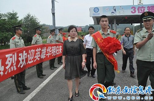 24日上午10點,華明從重慶乘飛機趕赴貴陽,然后從貴陽乘車返回三穗。下午3時50分,一輛黑色的越野車出現在了滬昆高速三穗征費站的出站口并嘎然停下。隨后,車門打開,一位年輕的戰士在戰友的幫助下,從車內走了出來。“華明來啦!”在現場等候的消防官兵喊了起來。頓時,鑼鼓響起來了,兩位少先隊員迎上去,他們先舉手敬禮,然后獻上了鮮花。黔東南州消防支隊等單位的領導隨后也迎了上去,與華明及其父親握手,歡迎華明返家。
