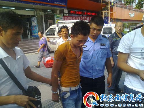 當日16時20分,該大隊反恐中隊便衣隊員在寧波路開展便衣反扒時,在州國稅局叉路口發(fā)現有2名年輕男子疑似州鄉(xiāng)鎮(zhèn)企業(yè)局門口搶奪嫌疑人,便電話通知同組隊員等前去盤查,并將情況向大隊長張紅衛(wèi)匯報,鑒于案情重大,為確保萬無一失,張紅衛(wèi)大隊長親自駕車組織人員前去對2男子進行盤查,正當準備盤查時,2男子發(fā)現民警后,欲奪路逃跑,民警果斷出擊,迅速將2人控制。經審訊,嫌疑人龍某某(男,21歲,凱里市龍場鎮(zhèn)人)、張某(男,22歲,凱里市龍場鎮(zhèn)人)交代了其二人結伙在州鄉(xiāng)鎮(zhèn)企業(yè)局門口實施搶奪2起的犯罪經過。