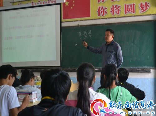 圖為高華方老師利用網(wǎng)友捐助的多媒體教學(xué)設(shè)施教學(xué)