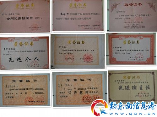 黔東南州麻江縣景陽(yáng)中學(xué)高華方老師23年如一日,以其崇高的人格魅力,把愛(ài)心灑向每個(gè)學(xué)生的心田,用自己的實(shí)際行動(dòng)詮釋了對(duì)黨的教育事業(yè)無(wú)限的忠誠(chéng),彰顯了一位普通教育者的偉大胸懷和職業(yè)道德,默默無(wú)聞為貧困山區(qū)教育戰(zhàn)線樹(shù)立了榜樣,曾8次被縣委、縣政府表彰為“全縣優(yōu)秀教師”;2009年教師節(jié)被州人民政府表彰為“全州優(yōu)秀班主任”;2011年5月在全省2010年“鄉(xiāng)村優(yōu)秀教師”120位候選人評(píng)選中,最終以91.6分名居第二名(第一名91.8分),被貴州省教育廳表彰為100名“貴州省邊遠(yuǎn)山區(qū)優(yōu)秀教師”之一。