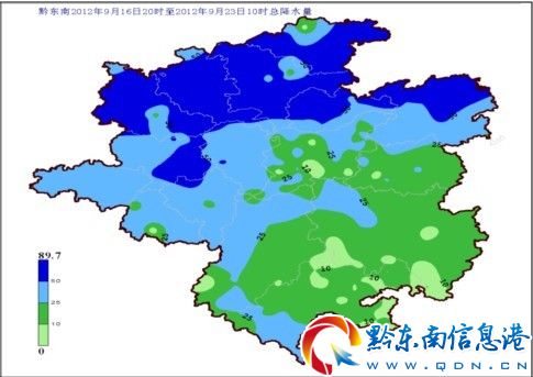 圖1 9月16日20時~23日10時全州各地累計降水量分布圖