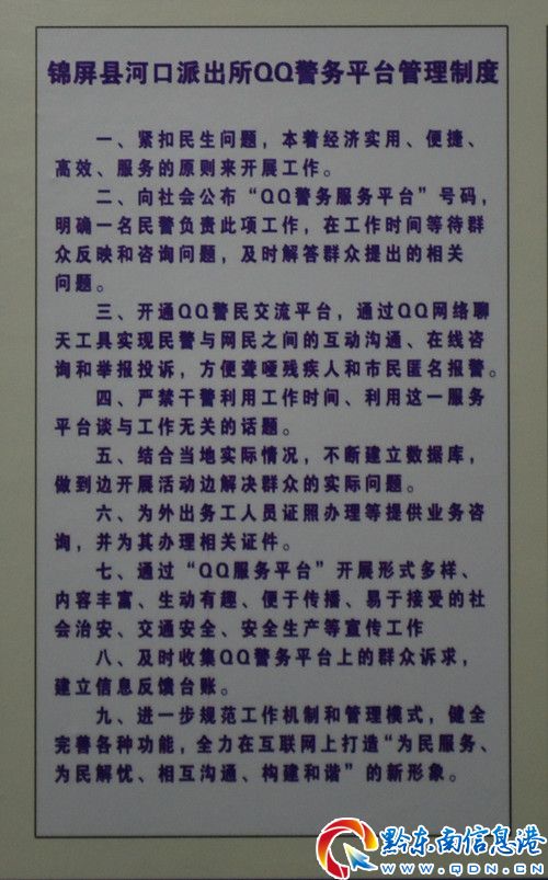 黔東南州錦屏縣河口派出所立足轄區地處邊遠山區,外出務工人員多的實際,2008年以來,該派出所充分利用互聯網資源,因地制宜開創了“QQ警務”,并在QQ空間中適時刊出一些有關戶口管理方面的知識、貼近生活實際的法律法規、收集一些打工維權的典型案例,同時還開設空間留言板,誠征群眾的意見和建議,不僅有效維護了當地社會治安,更是為當地身在異鄉的群眾解決了“辦證難”、“咨詢難”等問題。