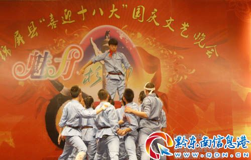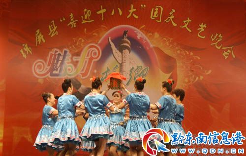 9月29日晚,錦屏城關體委舉行“喜迎十八大”國慶大型文藝演出。當日晚,精彩歌舞、小品等節目隆重上演,以此歌頌新中國成立以來錦屏苗山侗寨的巨變,吸引了上萬人前來觀看,讓節日里廣大民眾盡情享受文化節大餐。(姜巨標)