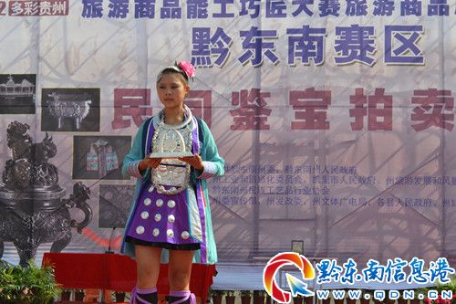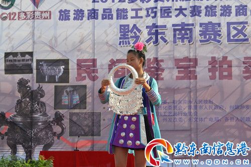 9月29日,“兩賽一會(huì)”黔東南民族文化收藏品、工藝精品品鑒拍賣會(huì)在凱里市萬博廣場舉行。拍賣會(huì)現(xiàn)場,來自全國各地的淘寶商人及民族文化收藏愛好者匯聚于此,場面隆重,紛紛對拍賣會(huì)上的苗族刺繡、苗族銀飾、思州石硯、苗族蠟染等黔東南民族文化收藏品以及金絲楠木煙斗和中國書畫等進(jìn)行搶拍。(文筱晟)