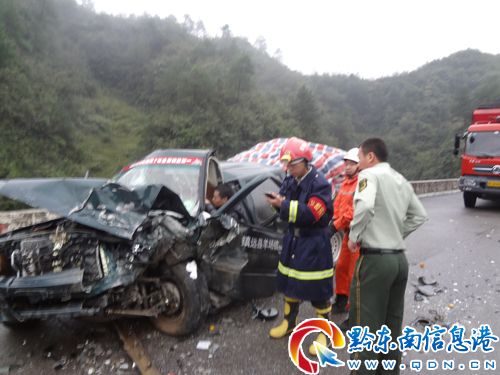 2012年10月5日16時46分黃平縣消防大隊接到群眾報警稱:老魚莊大橋發生交通事故,一輛從凱里方向駛來的皮卡車和一輛從黃平縣駛來的長城越野車相撞,相撞后長城越野車由于路面濕滑導致側滑下了五十米的深溝里,望你們前來救援。接到報警后,黃平大隊出動1輛搶險救援車和7名官兵,16時53分達到現場,成功救出一名被困員,而后又把深溝里另一名死者遺體送到了救護車并把現場移交給了交警,車禍導致一死三傷。(黔東南州支隊)