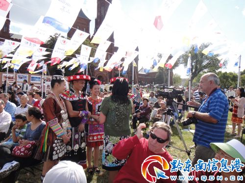 “魅力黔東南·神秘從江”演員在接受美國(guó)電視臺(tái)媒體采訪