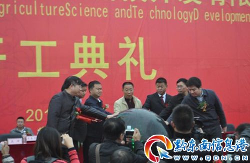 丹寨縣縣委書記、金鐘經濟開發區工委書記張淼\丹寨縣縣長、金鐘經濟開發區管委會主任侯美傳等縣四大班子領導以及貴州金農陽光農業科技開發有限公司董事長吳學國等出席開工儀式。