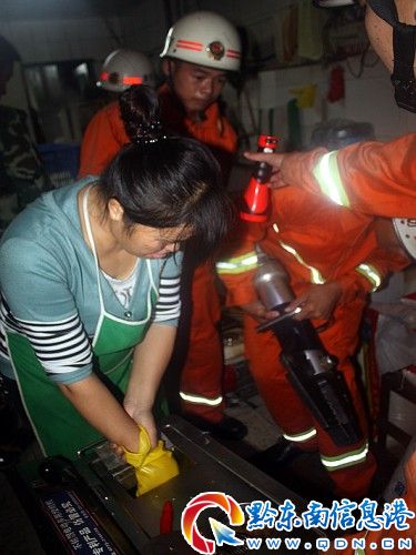 近日,貴州凱里大十字附近某浴城內發生慘劇,一女子在用切菜機械切辣椒等物時右手不幸被卷入機器內,食指和中指被切成了“肉片”。事發后,凱里消防官兵前往救援,經過近一小時的破拆,將受害女子的右手從機器內取出。