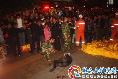 10月22日19時31分,凱里市消防大隊凱棉路中隊接警室接到一群眾報警大十字有人要跳樓輕生,急需消防官兵前往救援。凱棉路中隊接到報警后立即出動官兵9人一輛搶險救援車奔赴現場。