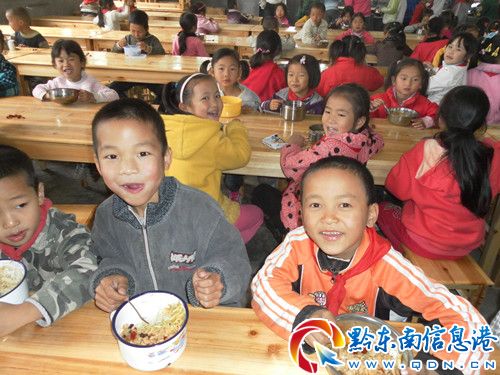 近日,錦屏縣新化小學的孩子們坐上了嶄新的餐桌。新化小學現有學生432人,人人享用營養午餐,為了讓學生人人有餐桌吃飯,國家又投入4000多元購買了25套符合國家學生專用用餐標準的餐桌。新化小學從實施學生營養午餐計劃到現在,實現了營養午餐全覆蓋和零事故的目標。圖為二年級學生在用餐時的開心場面。(李必祥)