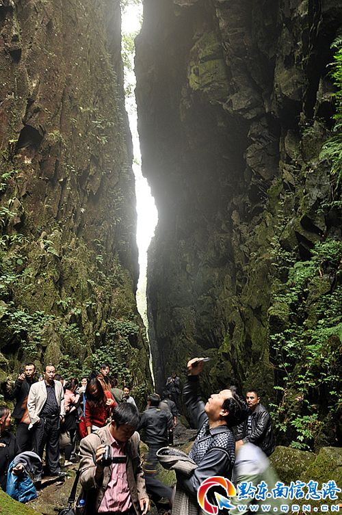 10月28日,參加天柱木杉村“生態泥鰍節”的游客、攝影家在天柱縣文化、旅游部門的組織下,探訪了“藏在深閨”中的天柱縣高釀鎮“一線天”景區。景區的險峻雄奇,激起了游客的驚嘆。“想不到天柱還有這樣的地方。”攝影家陳先生說。