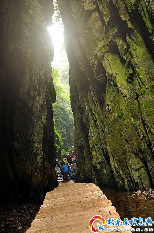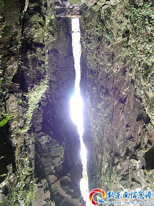 據介紹,“一線天”景區位于天柱縣高釀鎮木杉村境內,距離縣城26公里,景區范圍處在崇山峻嶺中,不僅精美如畫,而且資源極為豐富,有千年紅豆杉、青杠、雪花等珍貴樹種,還有海堂花、映山紅、報春花等,花香四季,野果遍山,可釀制侗家米酒。景區內有一條河穿插而過,由于山勢險峻雄奇,沿途形成了不少壯觀的瀑布,引人入勝。“一線天”是整個景區的標志性景點,它的平均寬度2.5米,高50余米,有300米的縱深,在低矮處抬頭觀望,兩塊巨大的懸崖石壁對峙,形成了天然而壯觀的“1”字。