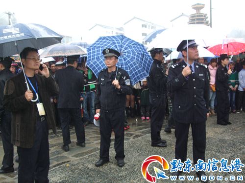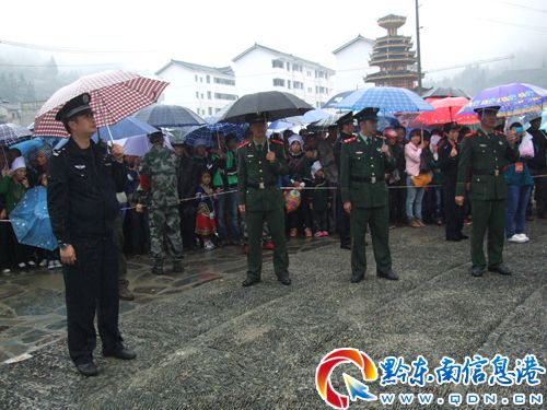 10月28日是貴州省雷山縣達地水族鄉建鄉20周年,為了讓該鄉建鄉慶典活動勝利舉行,雷山縣公安局黨委組織縣公安局、縣交警大隊、武警共60余名警力與該鄉20位民兵一道日夜巡邏,開展交通安全秩序暢通、維護會場秩序,使活動圓滿成功。(張希才 曾小科 攝)