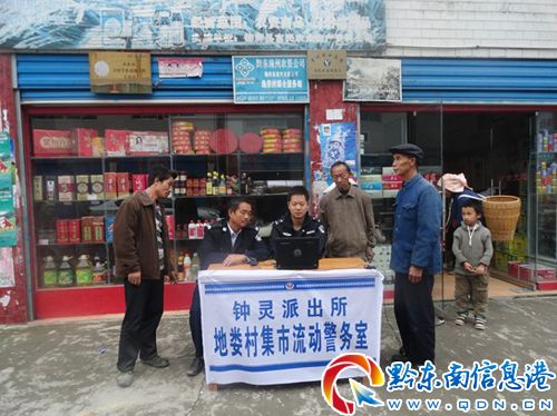 10月31日,農(nóng)歷九月十七日,恰逢鐘靈鄉(xiāng)地婁村趕場,上午7時,錦屏縣公安局鐘靈派出所民警就在地婁村擺起了“鐘靈派出所地婁村集市流動警務(wù)室”的“攤位”。有的開展巡邏疏導(dǎo)交通,有的向群眾開展防扒竊、盜竊等知識宣傳,開展法律咨詢等活動,有的為群眾義務(wù)照相、辦理身份證等。看到派出所“攤位”“生意興隆”,地婁村的村民委主任楊興輝在旁邊笑著用苗話連說了幾個“務(wù)”字。據(jù)楊興輝介紹“務(wù)”是苗話,翻譯成漢語是好的意思。并介紹說地婁村是個有著悠久歷史的苗寨,因地處果山南麓婁江水畔地勢如樓而得名。1978年大同至鐘靈過境公路從地婁村穿行而過漸漸形成街市。過去每逢趕場人流集中堵車、錢被盜、糾紛扯皮的情況時有發(fā)生,群眾盼望能見到警察。從今年8月份起,鐘靈派出所設(shè)立地婁村集市流動警務(wù)室,實行民警趕場“擺攤”開展巡防和服務(wù)工作,現(xiàn)地婁趕場天秩序井然。