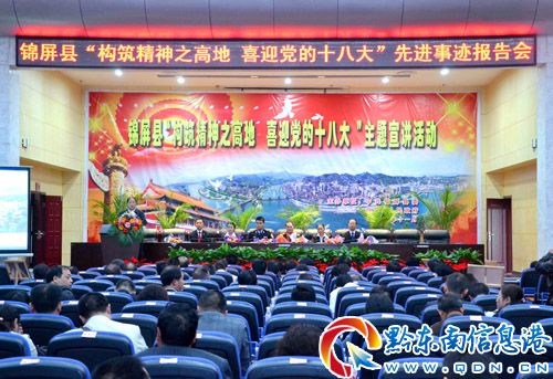 連日來(lái),為迎接黨的十八大勝利召開(kāi),錦屏隆重舉行“構(gòu)筑精神之高地,喜迎黨的十八大”主題宣講報(bào)告會(huì),通過(guò)宣傳劉坤強(qiáng)、張林昌等錦屏培育并成長(zhǎng)起來(lái)的時(shí)代模范,學(xué)習(xí)先進(jìn)典型,構(gòu)筑精神高地,幫助干部職工進(jìn)一步統(tǒng)一思想、凝聚力量、振奮精神、鼓舞士氣,在全縣范圍內(nèi)營(yíng)造了學(xué)先進(jìn)、趕先進(jìn)、當(dāng)先進(jìn)的良好氛圍。