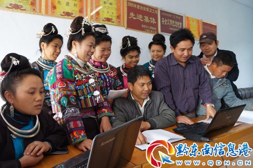 這是丹寨縣揚武鄉羊排村村民們在討論胡錦濤同志所作的十八大報告時的熱鬧場景。大家通過網絡,熱議黨的十八大報告精神,或是認真記錄,或是積極發言。你一言我一語,都在為村組經濟發展獻良策,也在為如何做好民族文化的提建議。十八大報告中提出的要繁榮發展少數民族文化事業,建設社會主義文化強國,讓村民看到了民族傳統手工技藝再次蓬勃發展的春天。