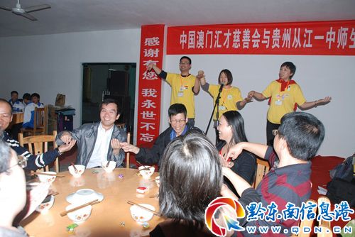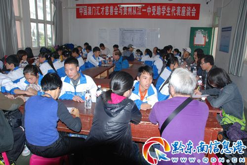 走訪期間,愛心人士還與該縣師生和相關部門領導舉行了座談會。重點圍繞受助學生的實際情況及表現、新受助學生申請工作及問題、助學工作跟進等內容來展開;該縣教育局、統戰部等相關部門并就該縣教育基本情況、學生貧困助學情況以及該縣民族文化、招商引資等方面工作分別作了介紹。為加深受助學生與愛心人士間的感情,還舉辦了一場主題為“澳門匯才慈善會--從江一中‘相知、相識’晚會”,讓愛心人士在從江度過一個難忘的夜晚。