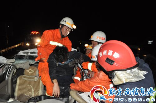 11月11日晚22時03分,臺江縣消防大隊接到群眾報警稱,滬昆高速臺江至劍河段,老寨2號隧道路段發生一起追尾事故,造成1人被困。經過消防官兵的快速施救,成功將被困車內的傷員救出。