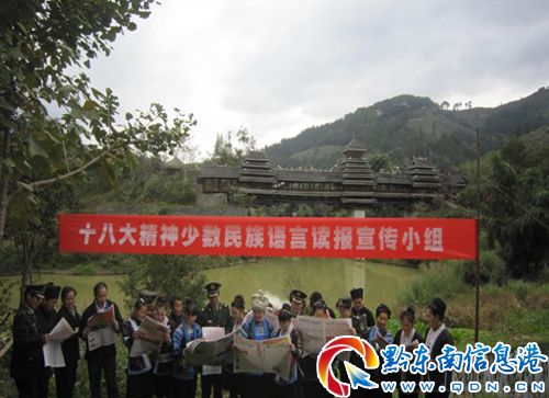 中國共產黨第十八次全國代表大會在北京召開后,連日來,黎平縣人武部組建“十八大”學習宣講小組,深入少數民族地區廣泛宣傳十八大會議精神,使黨的聲音響徹苗鄉侗寨每個角落,將軍民魚水情融入群眾心坎上。圖為黎平縣地坪鄉侗族群眾與軍隊干部共同學習十八大精神。(鐘家武 楊勝澤)