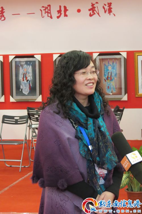 作為此次湖北漢繡代表之一、有著“江城十大巧娘”之稱的肖蘭老師忙著向廣大觀眾介紹漢繡的同時(shí)接受了我們的采訪。肖蘭老師表示,非常感謝凱里為中國刺繡行業(yè)的交流搭建了一個(gè)如此好的平臺,讓各刺繡名家能夠在此進(jìn)行深入交流學(xué)習(xí)。