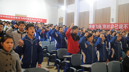 此次演講的主題是“青春飛揚(yáng),別對自己說不可能”。龍飛鴻先生時(shí)而用風(fēng)趣逗得學(xué)生們捧腹大笑,時(shí)而以自身的坎坷經(jīng)歷令學(xué)生們蹙眉凝神。演講過程中的互動(dòng),將演講氛圍不斷推向高潮,以別開生面的方式教育學(xué)生遠(yuǎn)離早戀、網(wǎng)吧和煙酒等不良嗜好,學(xué)生們表現(xiàn)出極為高漲的熱情。