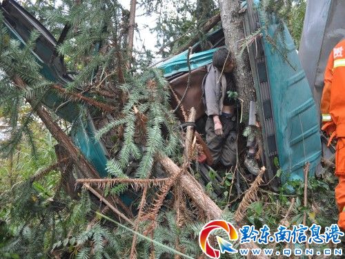 9時(shí)40分,消防官兵到達(dá)現(xiàn)場(chǎng),交警對(duì)現(xiàn)場(chǎng)進(jìn)行警戒,醫(yī)護(hù)人員做好了急救準(zhǔn)備。現(xiàn)場(chǎng)只見(jiàn)一輛貨車和一臺(tái)挖掘機(jī)面目全非,翻下山溝卡在一顆大樹(shù)上,車頭朝下嚴(yán)重變形,副駕駛室大面積凹陷,玻璃渣、汽車零件拋灑一地,挖掘機(jī)翻滾在貨車下方10米處,下面是一望無(wú)際的溝壑。1人被翻車時(shí)甩出車外受傷嚴(yán)重,不停地痛苦呻吟,車上2名人員被困在駕駛室。經(jīng)醫(yī)務(wù)人員確定已死亡。